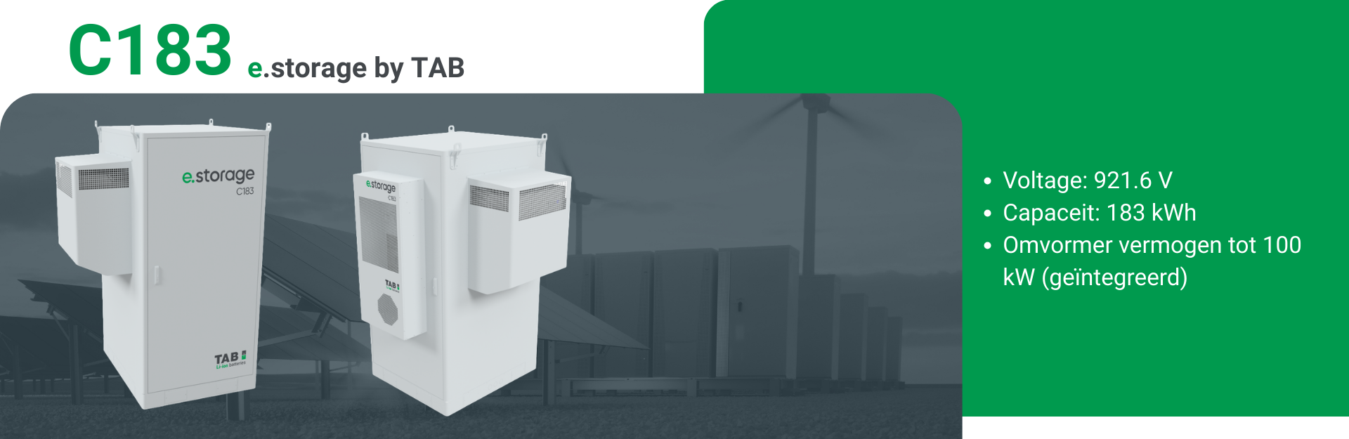 TAB e.storage C183 – een krachtige, veilige en flexibele energieopslagoplossing, speciaal ontworpen voor de eisen van industriële en commerciële toepassingen.